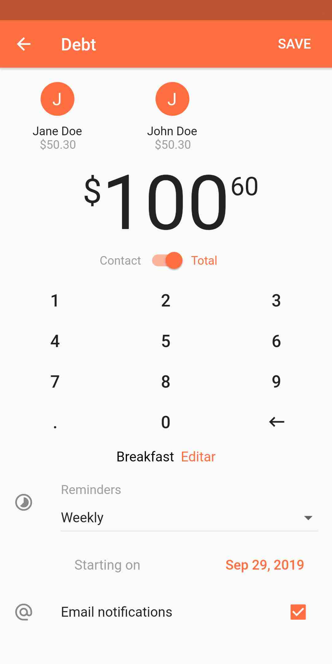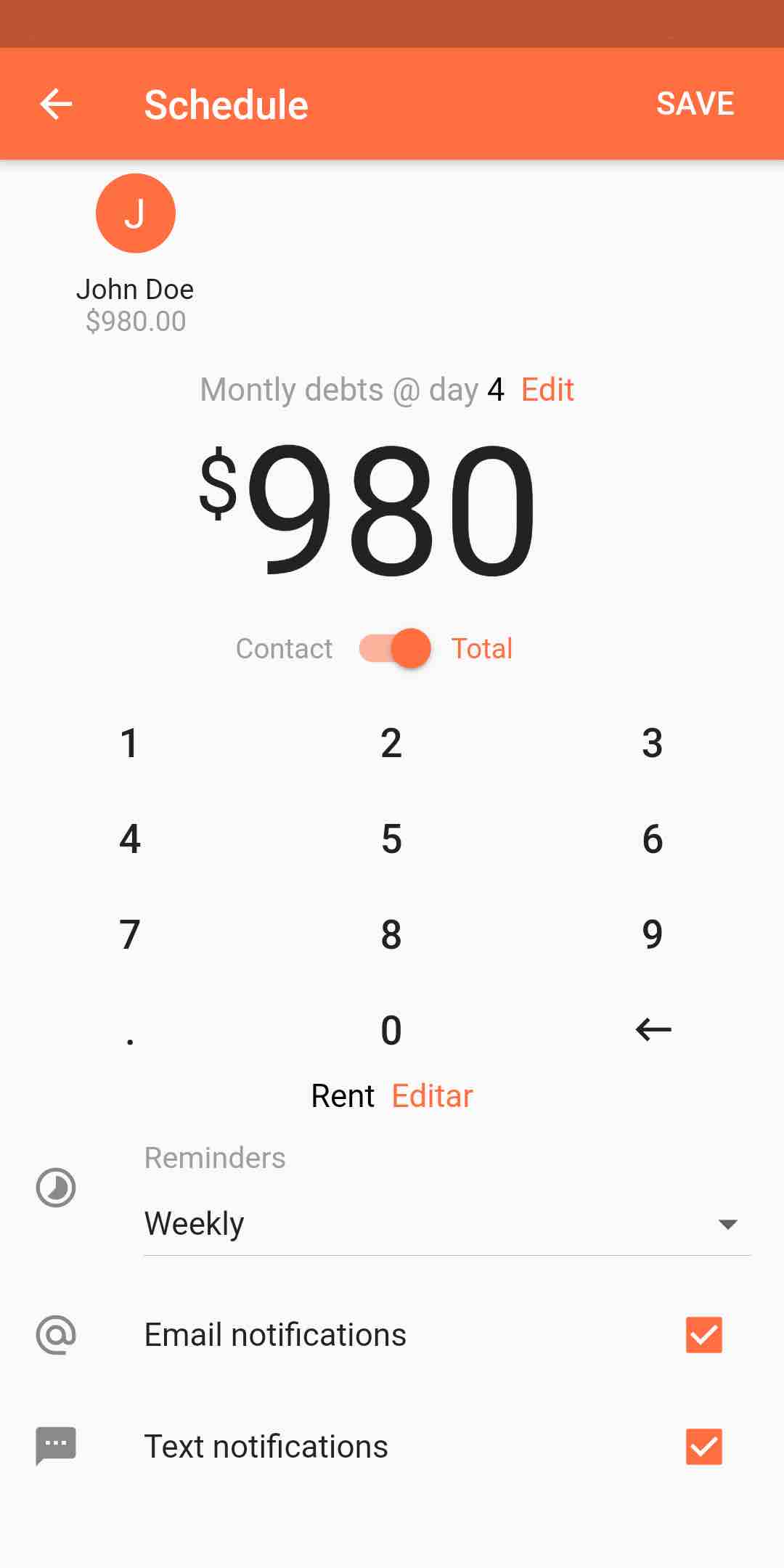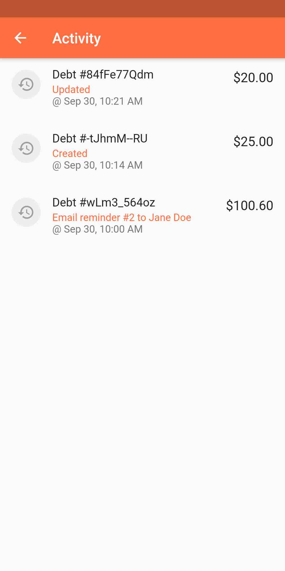 Monitor balance of unpaid debts anytime.